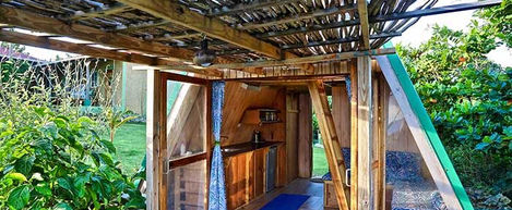 Happy reggae colors combined with woods and organic handmade furniture & meditative photographs will make you feel comfy & relaxed